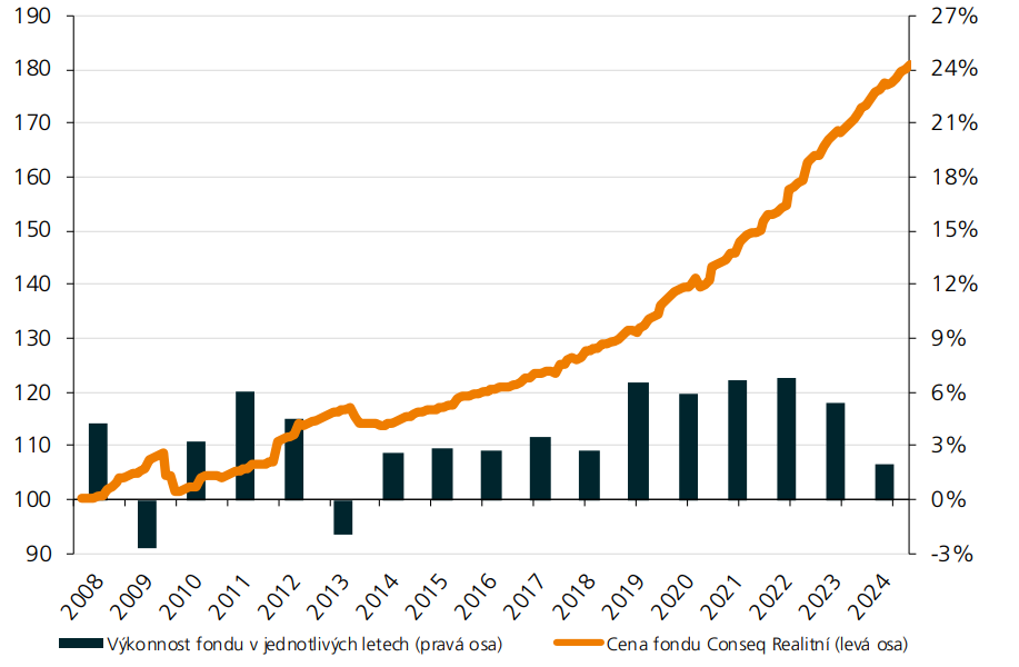*Graf vývoje jednoho z nejstarších realitních fondů Conseq realitní