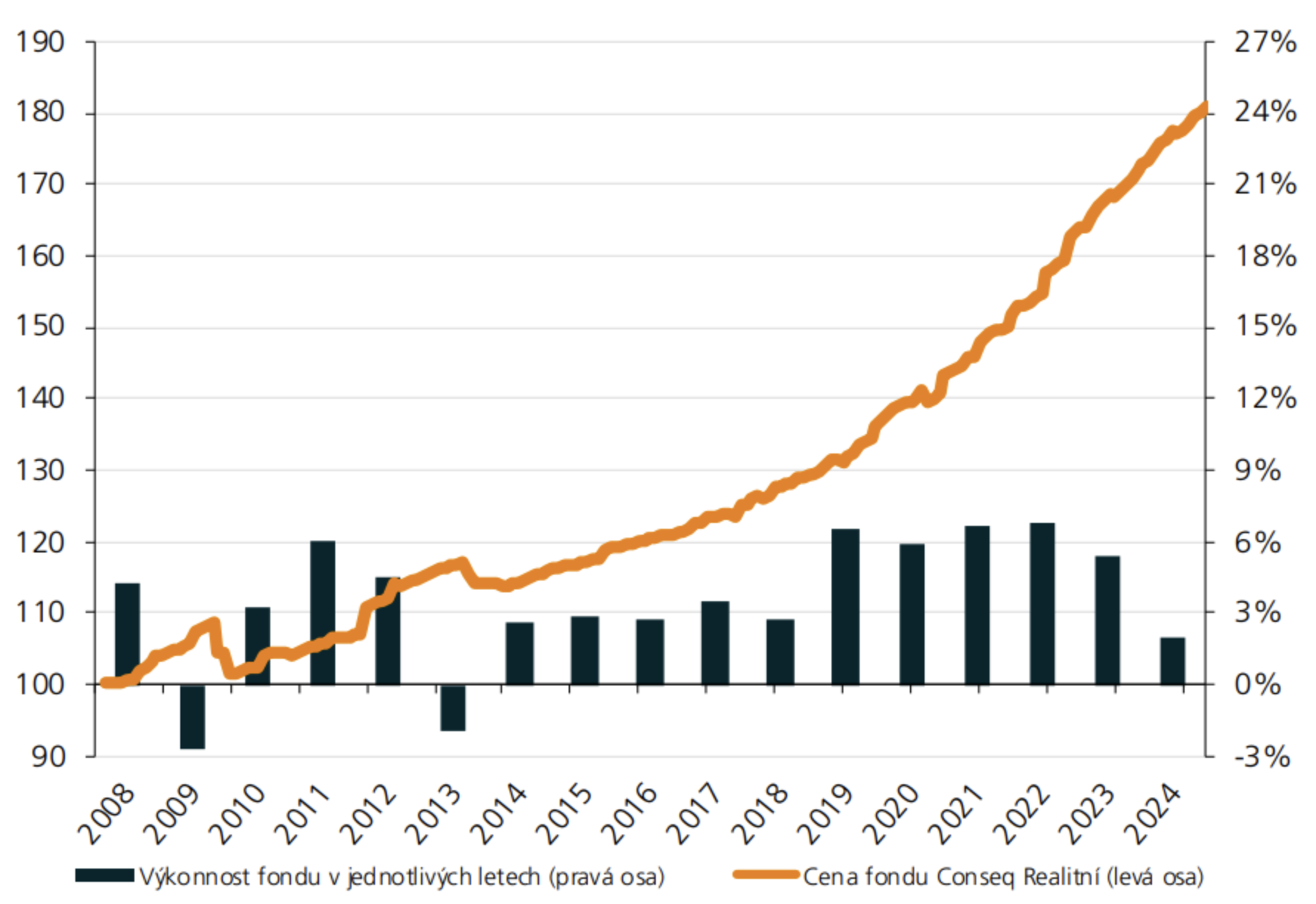 *Graf vývoje jednoho z nejstarších realitních fondů Conseq realitní